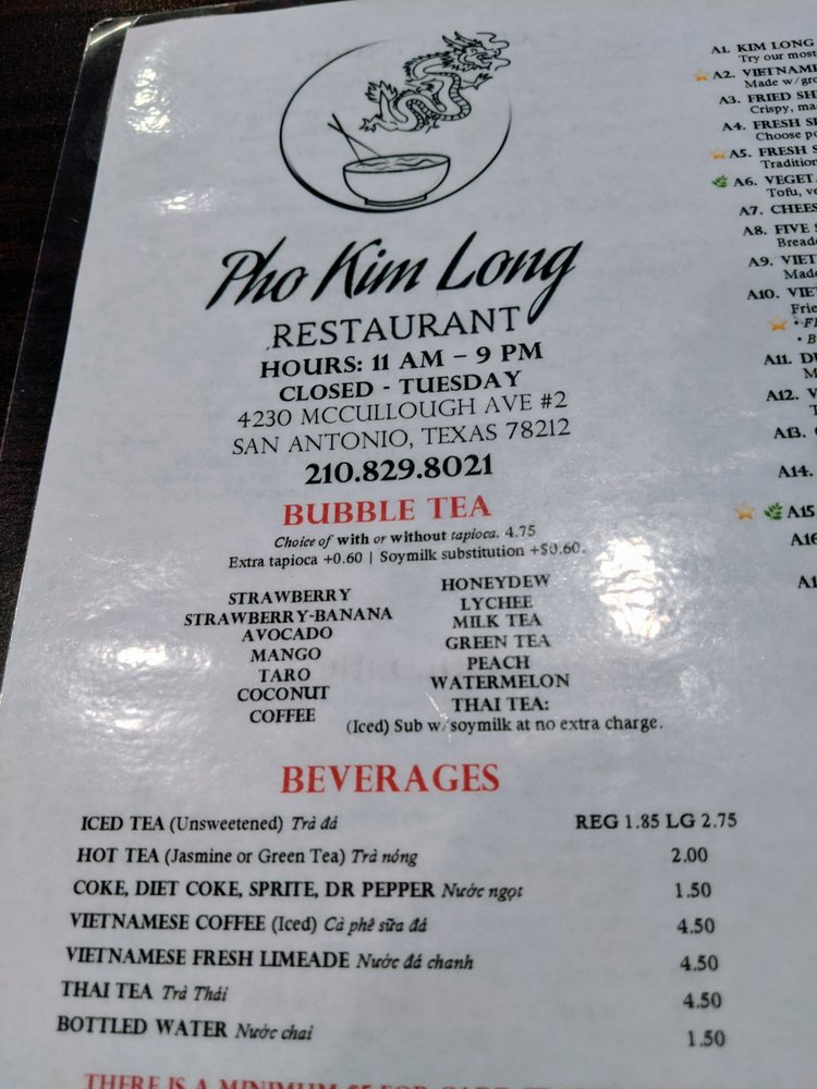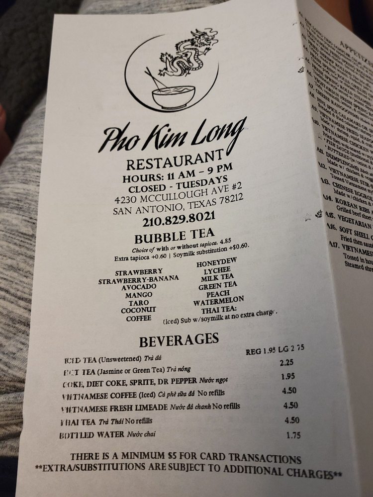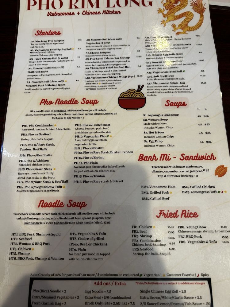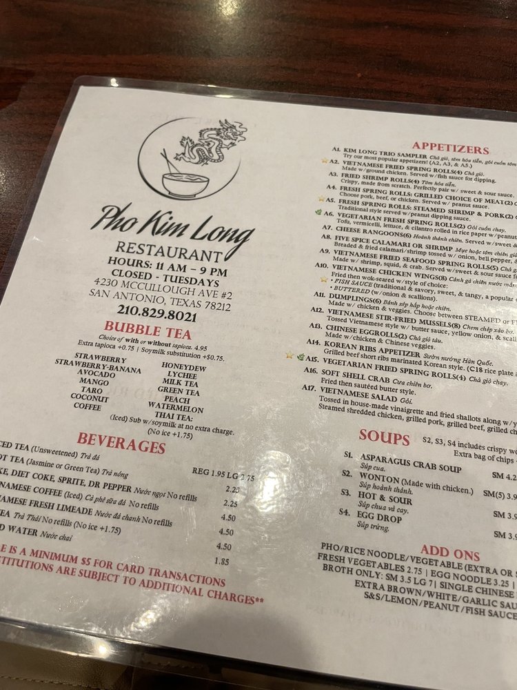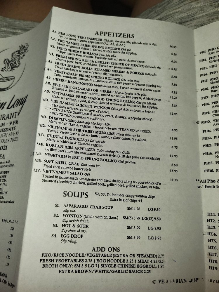 Pho Kim Long Menu (2025 Update)