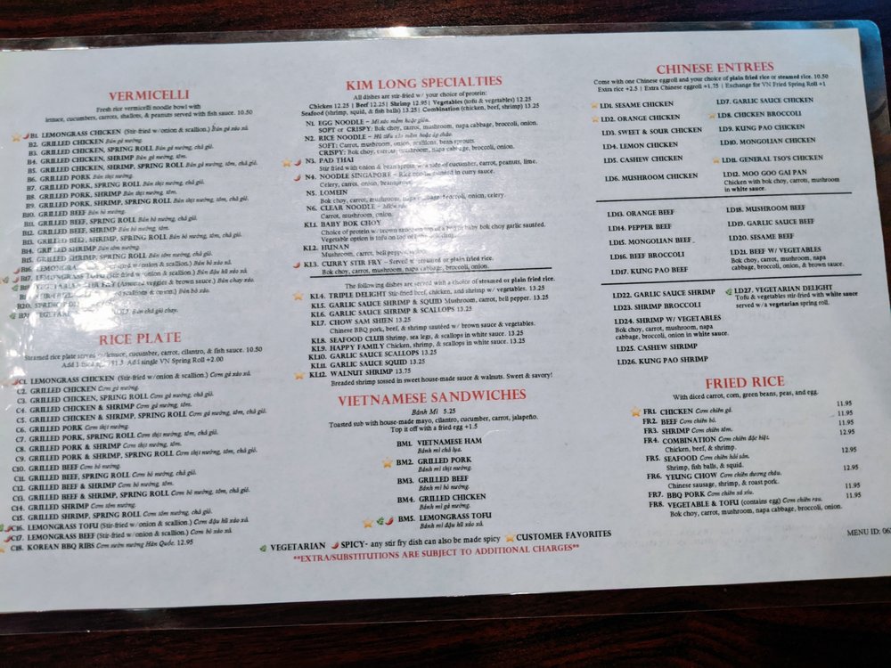 Introducing the menu at Pho Kim Long, a Vietnamese-Chinese restaurant in San Antonio, TX, known for its outstanding food and relaxed atmosphere. Customers rave about the flavorful banh mi sandwiches, especially the chicken and grilled pork options. The pho is a must-try, with rich and aromatic broth that hits the spot on a rainy day. Other highlights include the vermicelli bowls and Vietnamese fried spring rolls. Despite some mixed reviews on service speed, the quality of the food shines through. The restaurant offers a range of options, including vegan and vegetarian dishes, making it a great choice for groups or families. With an emphasis on delicious flavors and generous portions, Pho Kim Long is a top spot for authentic Vietnamese cuisine in San Antonio.